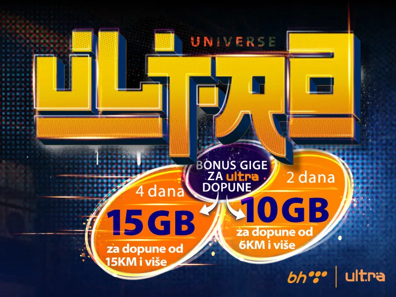Dopuni Ultra kredit putem BH Telecom usluga ili na prodajnom mjestu i osvoji do 15 GB!